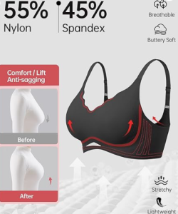 • Comfy Soft Fabric: Upgraded with buttery soft, breathable, and stretchy fabric, this wireless bra conforms to your body’s curves, giving a second-skin feel. The stretch underband stays in place and won’t roll up. Made with cutting-edge technology, this t-shirt bra offers a smooth, seamless fit that stays invisible under your clothes for a no-show look
