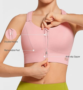 • Front Zipper Bra with Covered Hooks: Easily and quickly slip into and pull off this innovative bra with front hooks concealed by a heavy-duty anti-slip zipper.